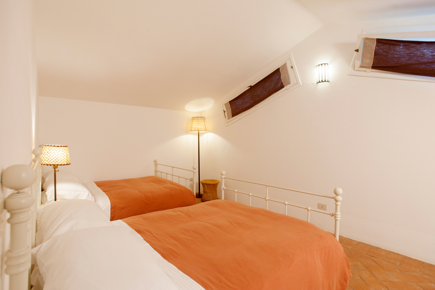 Cottage del Lupino consists of a single main building: the ground floor has a wide living room, two bedrooms with walk-in closets and bathrooms, a room for the staff and a bathroom for your guests. The attic has two other bedrooms and a bathroom. Bedrooms are air-conditioned.