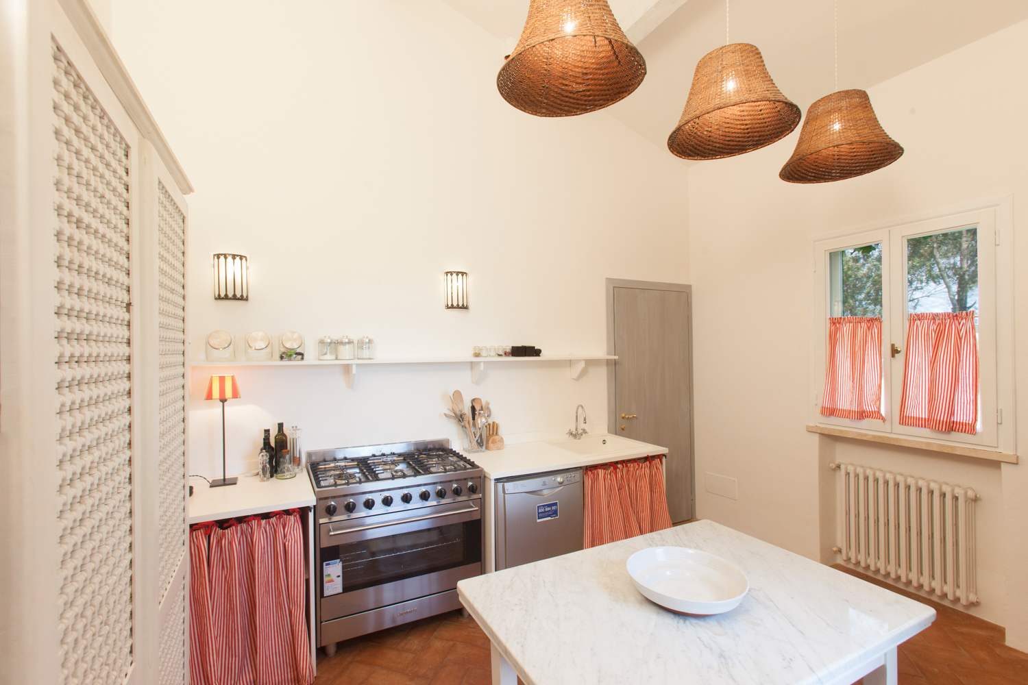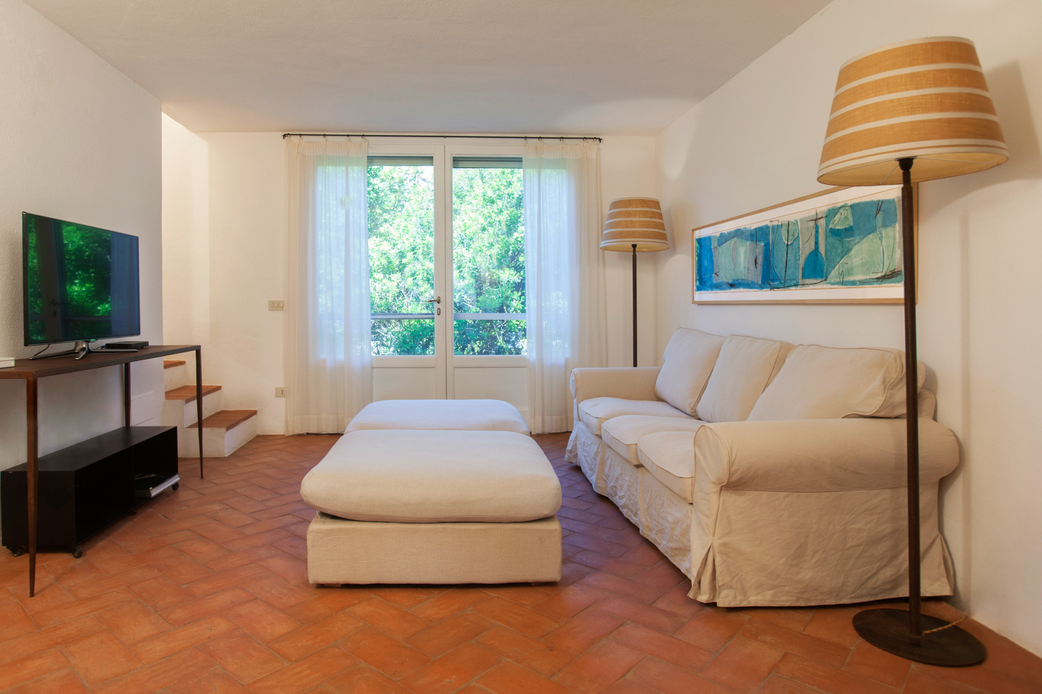 Furnishings have a Tuscan rustic style, where earthy colors dominate: taupe, sage and brown. The floor is covered with precious Tuscan cotto tiles, embracing all rooms with ancient and genuine warmth.