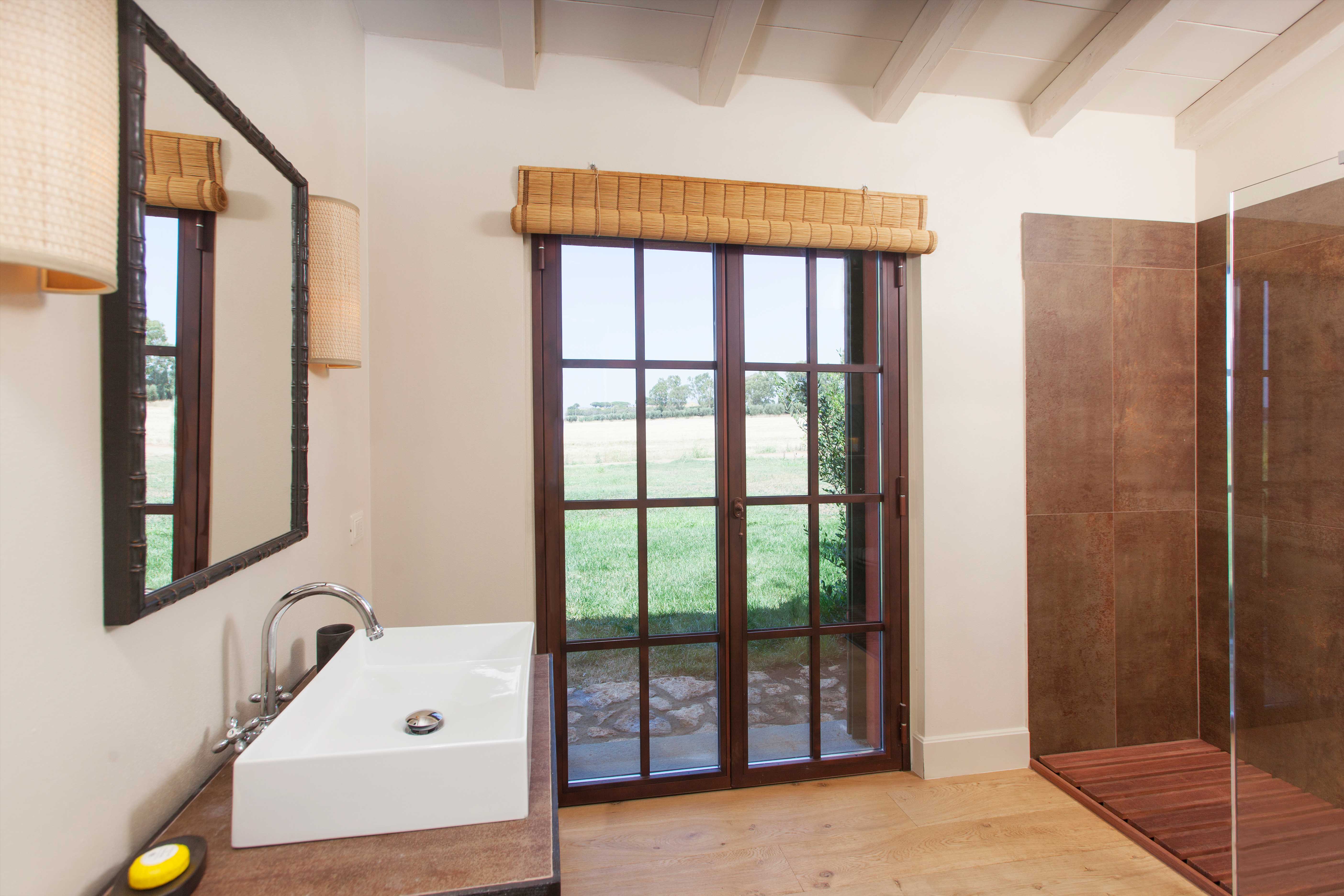 The Cottage has a large living space with comfortable sofas, TV set, dining table and kitchen. The kitchen is fully equipped to prepare delightful dinners and there is also a small external laundry room. It has two spacious bathrooms, with comfortable showers. The Small Cottage is air-conditioned.