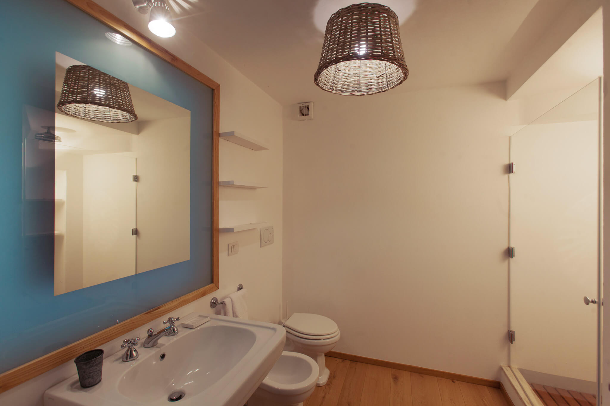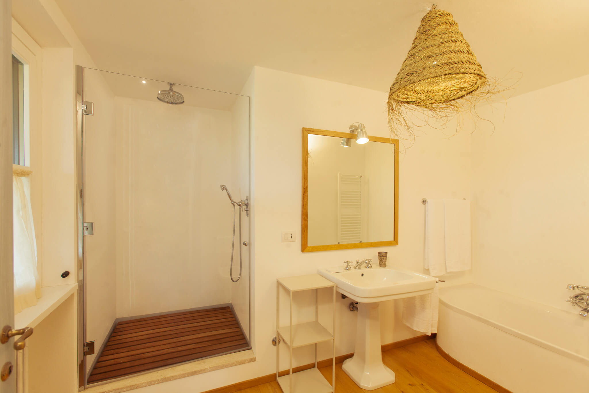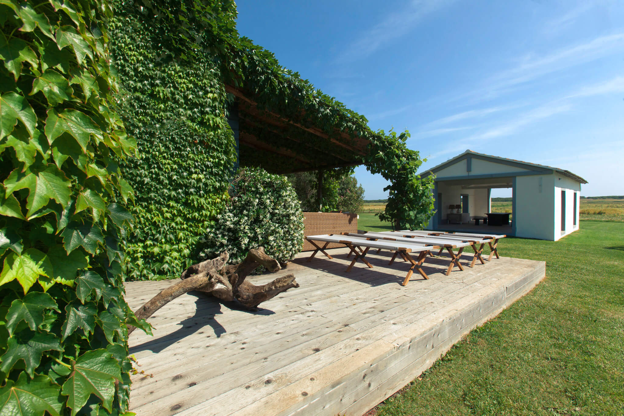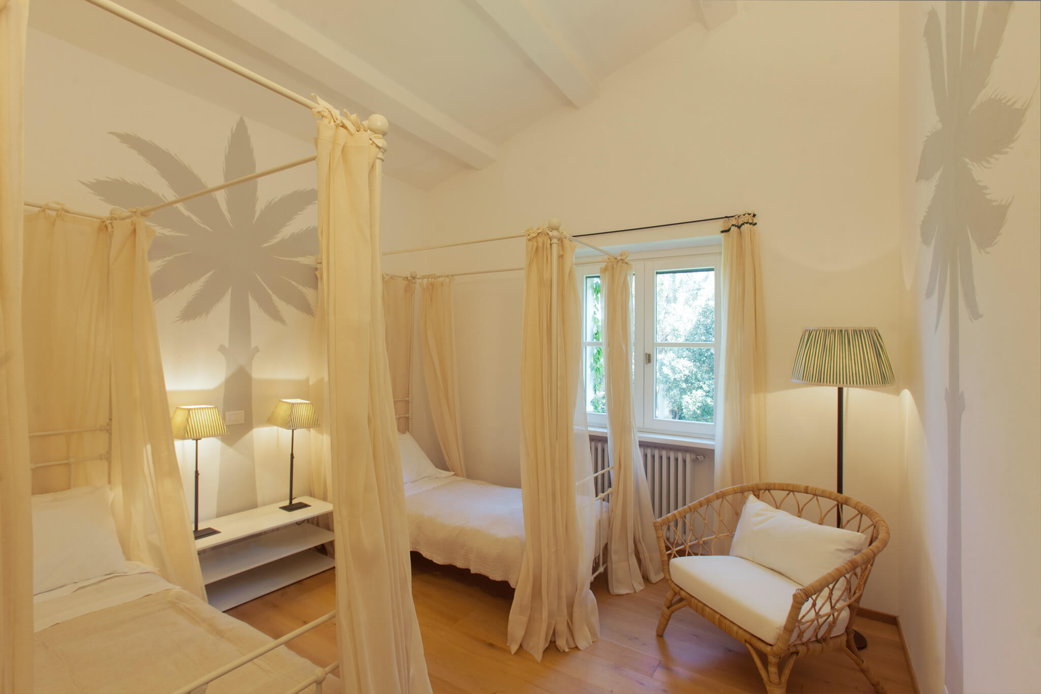 Villa dell’Eucalipto, Terre di Sacra’s feather in the cap, has been entirely renovated in 2015 and refurnished and decorated in 2018. Bamboo, straw, raw wood and terracotta are a recurring theme in the villa’s rooms. Bamboo mats, raffia lamps and terracotta plates decorate common areas. Recently, a new 25-meter-long swimming pool was completed.